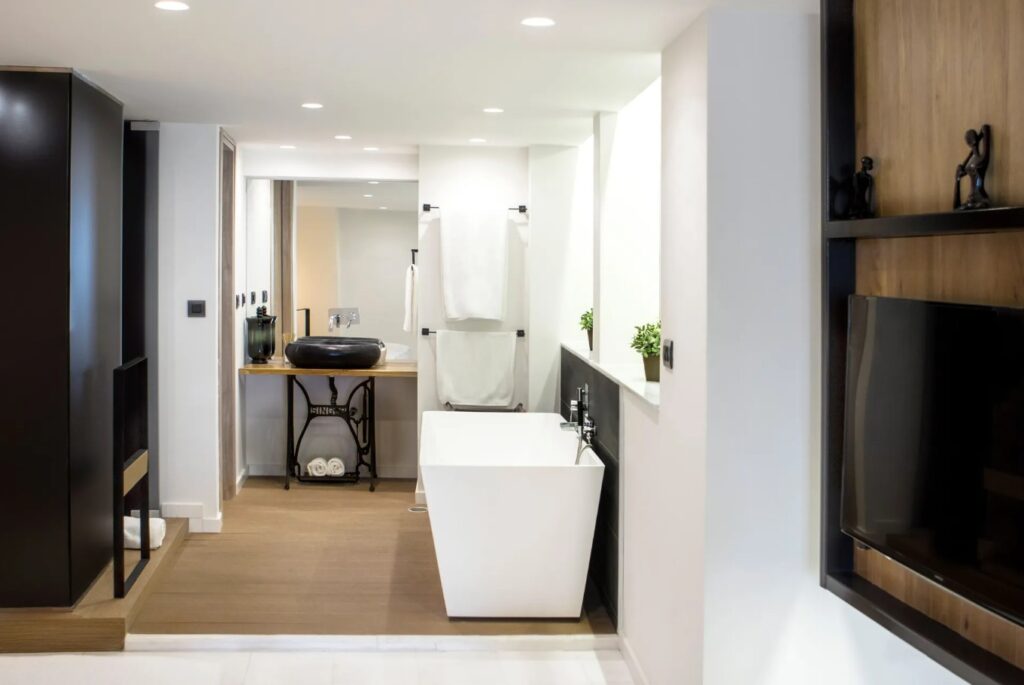 The hot tub is the standout feature of this 210 square meters suite.